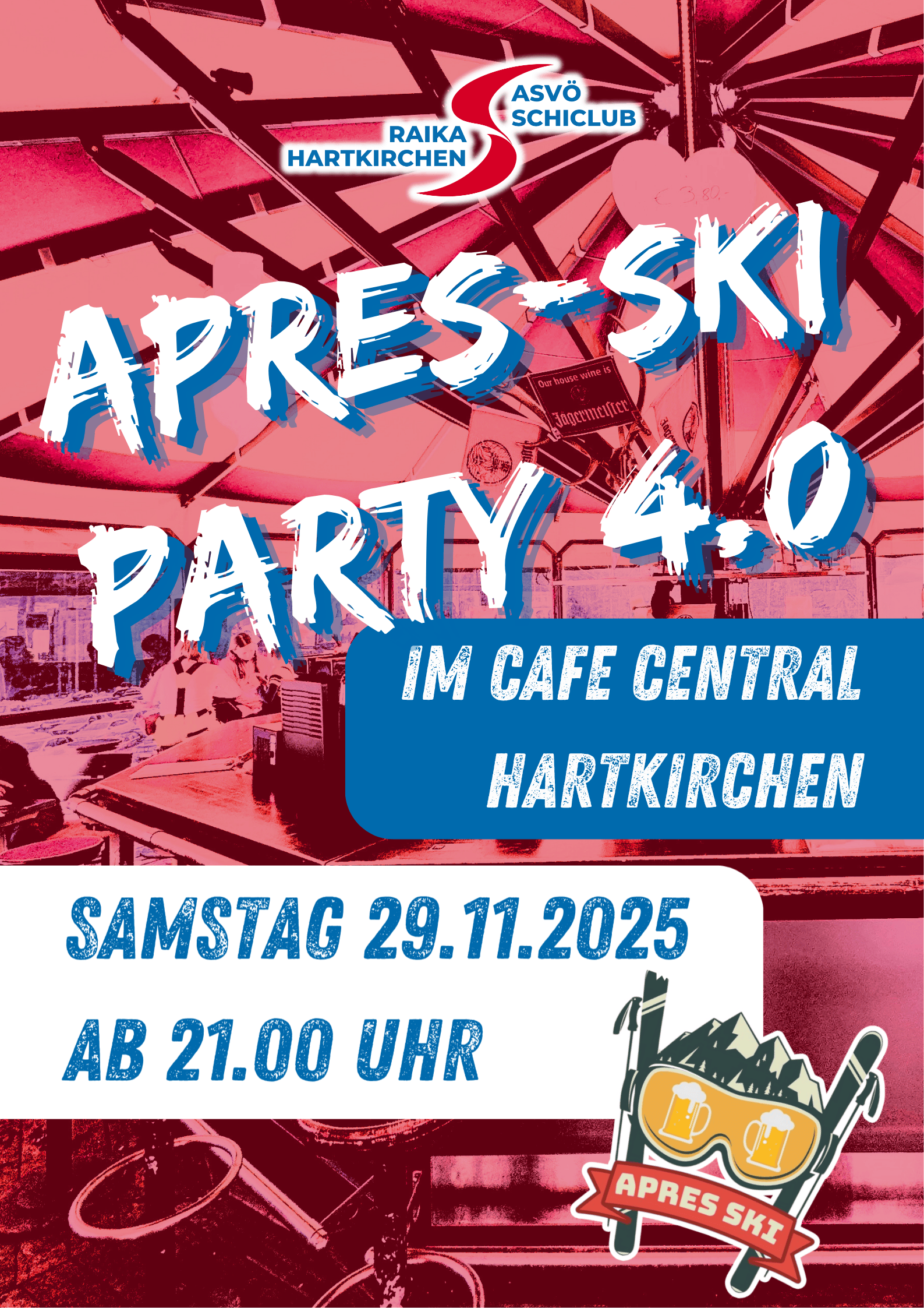 Aprés-Ski Party ab 21:00 Uhr im Café Central.